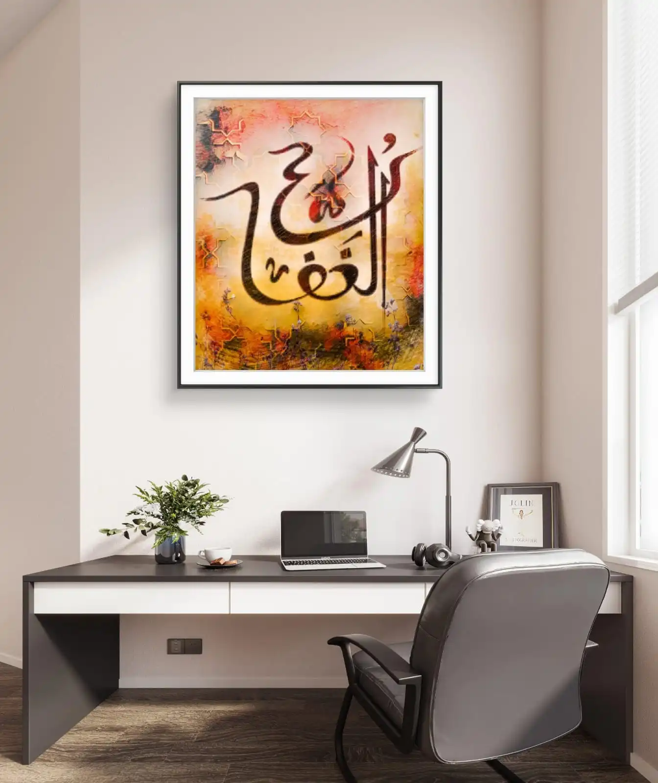 This piece fits living rooms, halls, offices, and prayer corners. The warm tones blend with modern and traditional décor. It also works well as a spiritual gift for special events. Al Gaffar Arabic Calligraphy carries a message of forgiveness and hope. The design makes the room feel peaceful and complete. This artwork stands out as a meaningful addition to any home. It also brings visual harmony to spaces that need a calm touch.