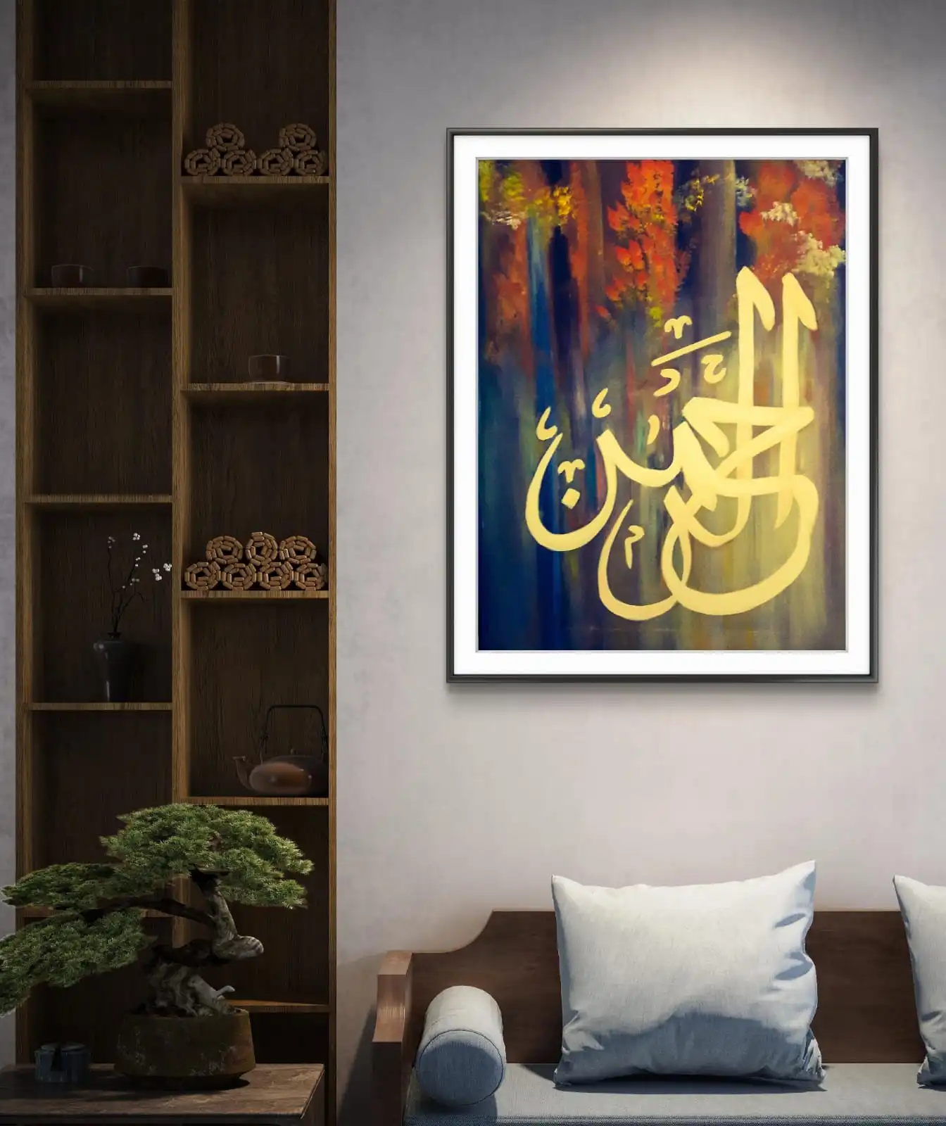 This artwork fits living rooms, halls, prayer corners, and offices. It blends well with modern and traditional décor. The soft tones create a calm setting and help the room feel balanced. Ar Rahman Arabic Calligraphy also makes a meaningful gift for family and friends. It carries a message of care and compassion. The design creates harmony and adds charm to any wall.