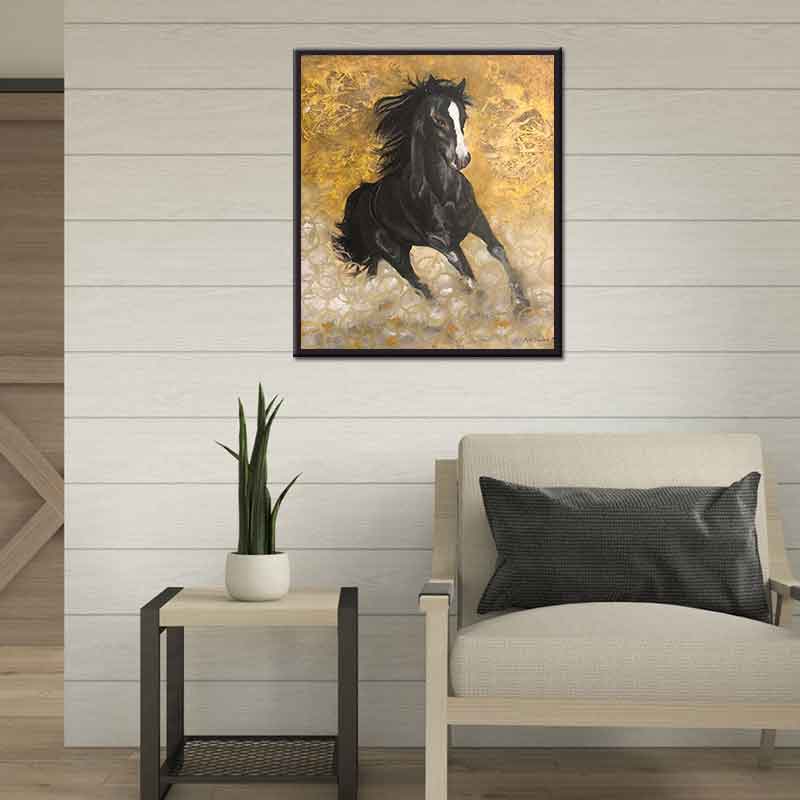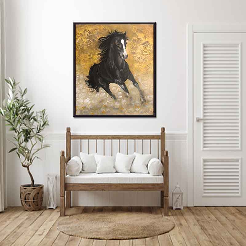 | Ashwa Shakti by S.H.Sumbul Medium: Acrylic On Canvas Dimension : 22 x 19 (Including Frame and Authenticity certificate) Exclusive Framed Painting (Ready To Hang) |