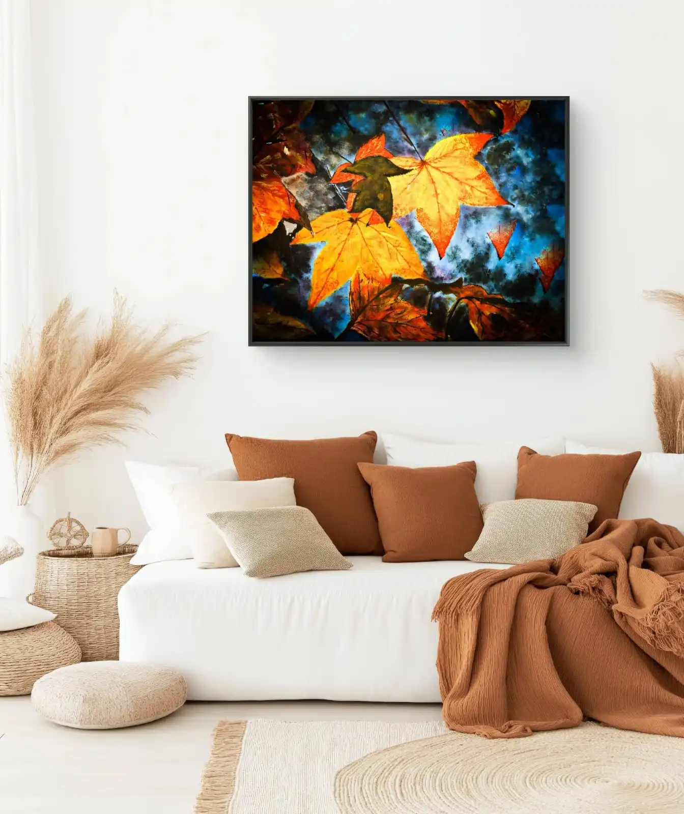 Autumn Night Painting is a fine art print on cotton canvas created from the original handmade painting. It suits living rooms, bedrooms, and workspaces. Offered in classical, gallery, and unframed options.