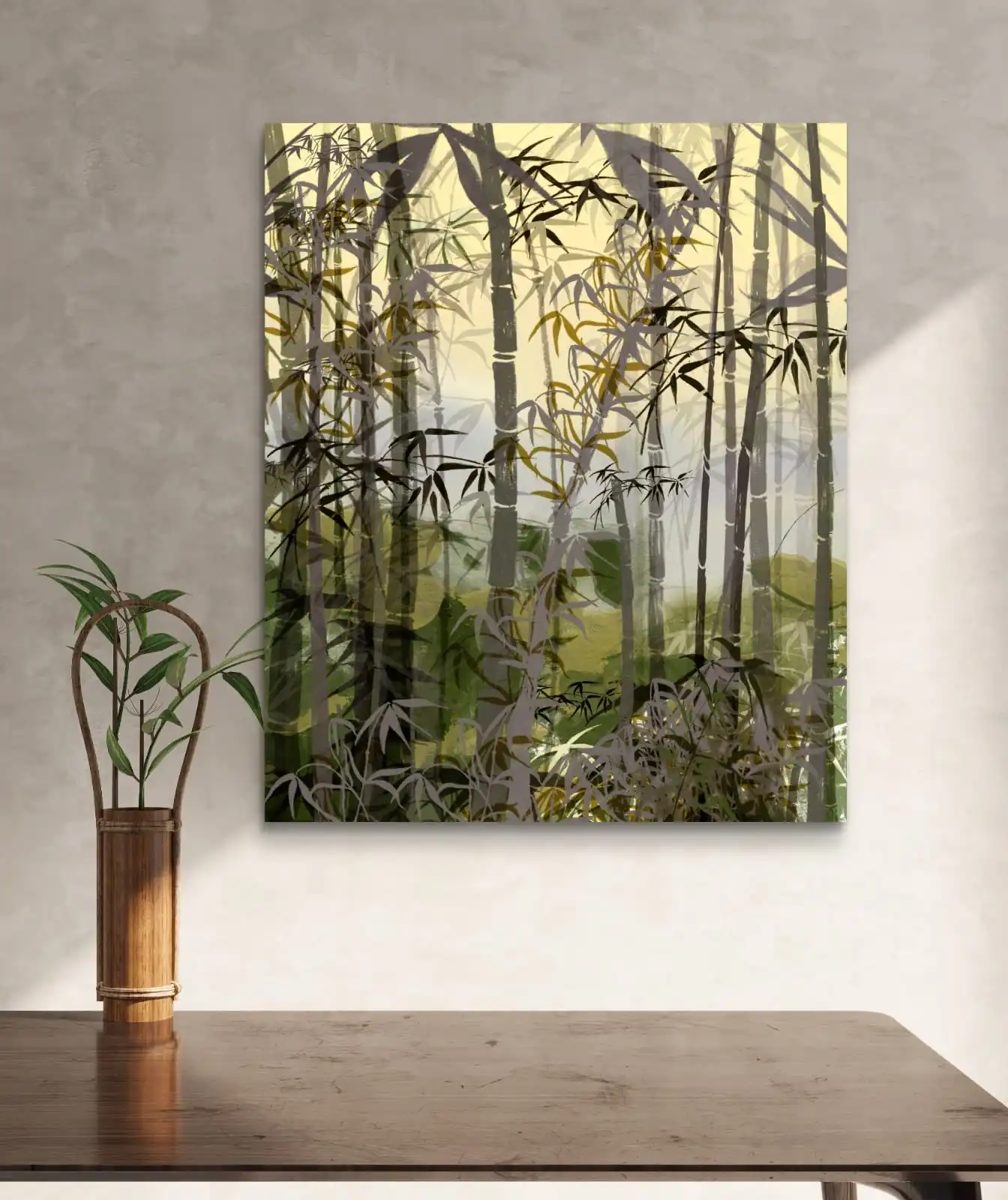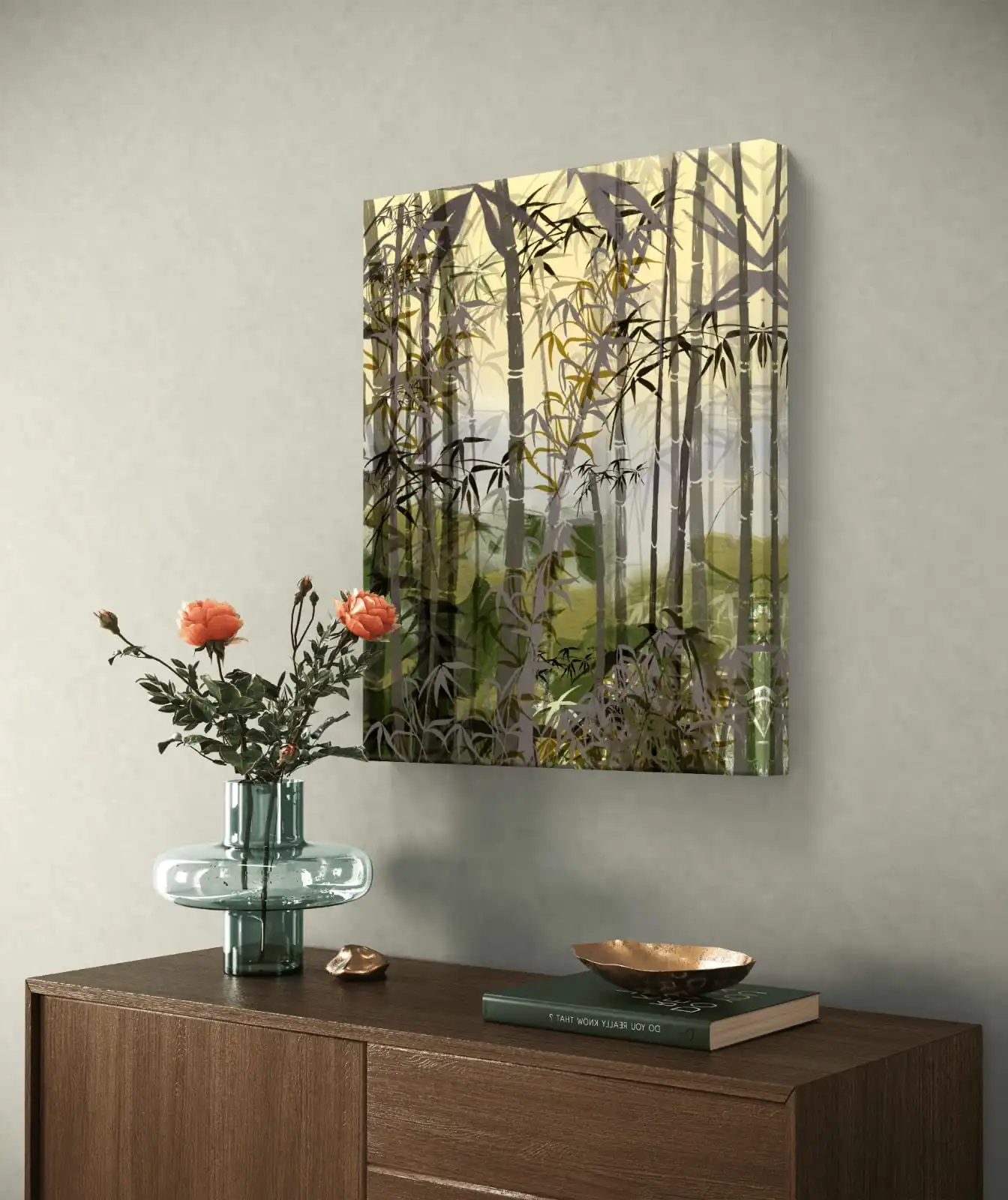 Bamboo Forest Landscape Painting – Fine Art Print on Canvas