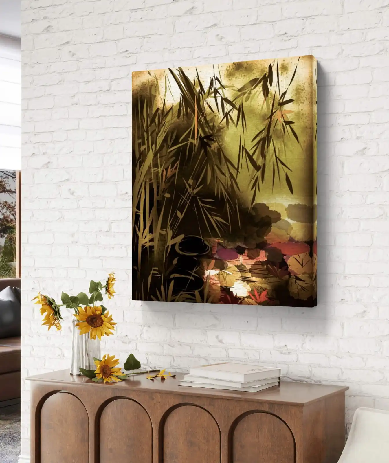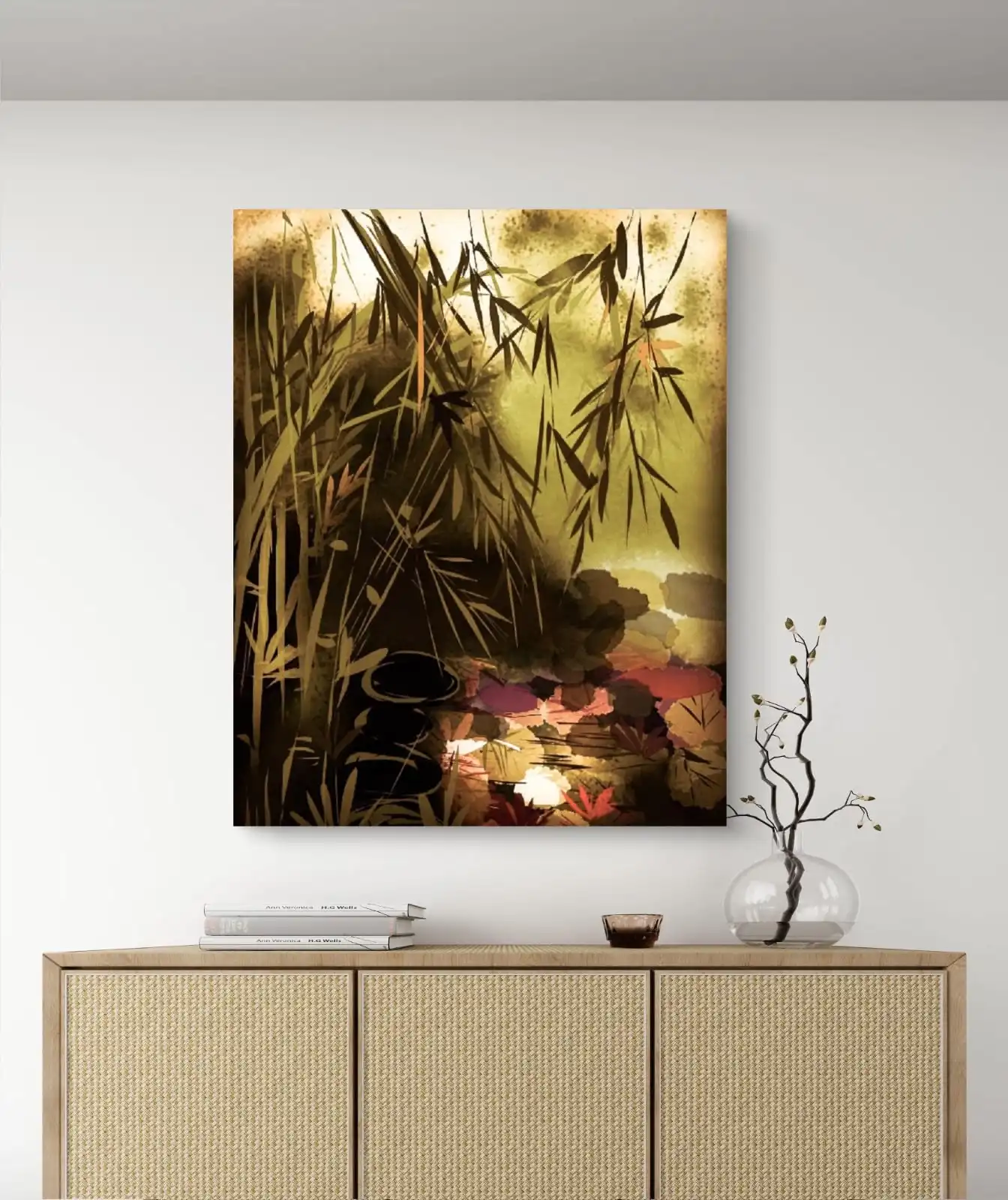 Bamboo of Prosperity art is a calming wall piece that celebrates growth and good fortune. This fine art print is made on cotton canvas, giving it a smooth and lasting finish. The design captures the strength and beauty of bamboo, a symbol of wealth and harmony in Feng Shui.