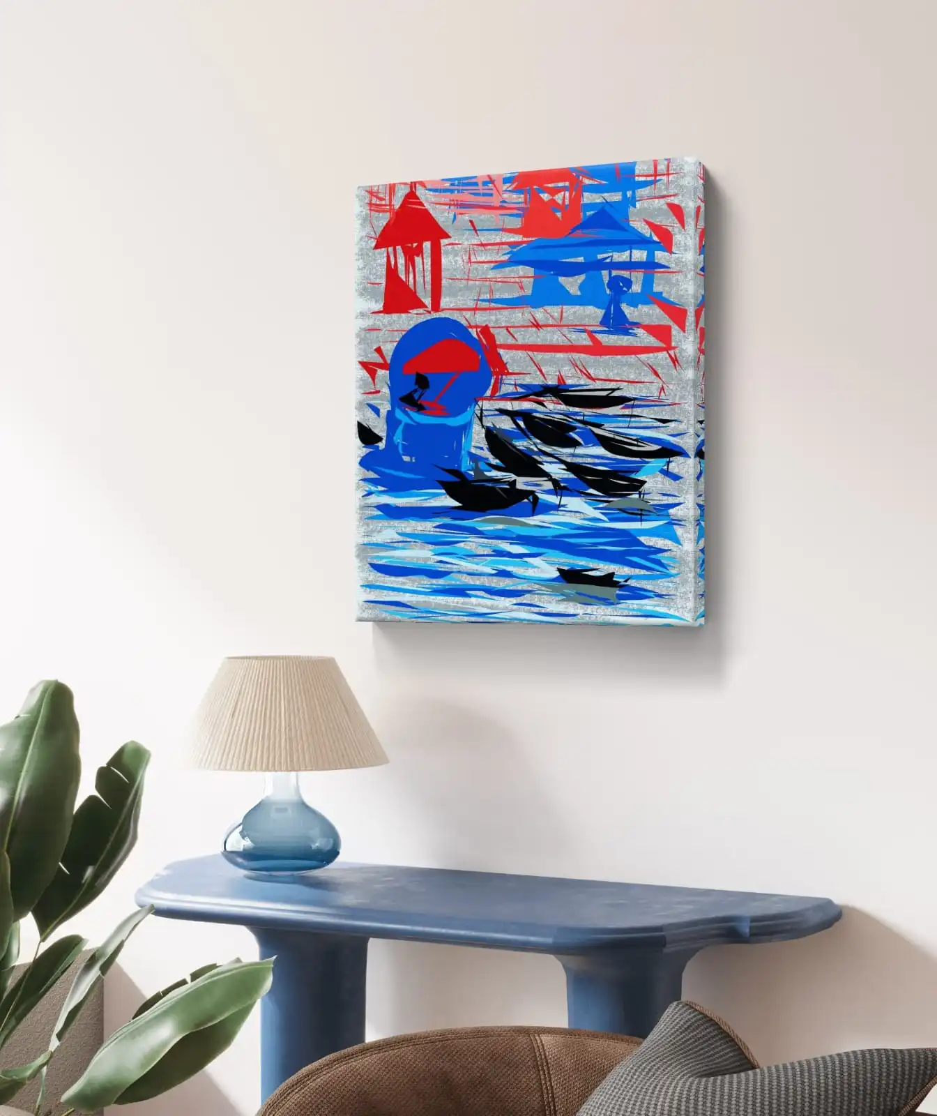 This Banaras Ghat Elevated Silhouettes artwork focuses on shape and balance. The layers create depth. Light and shadow add contrast. The scene feels bold but peaceful.