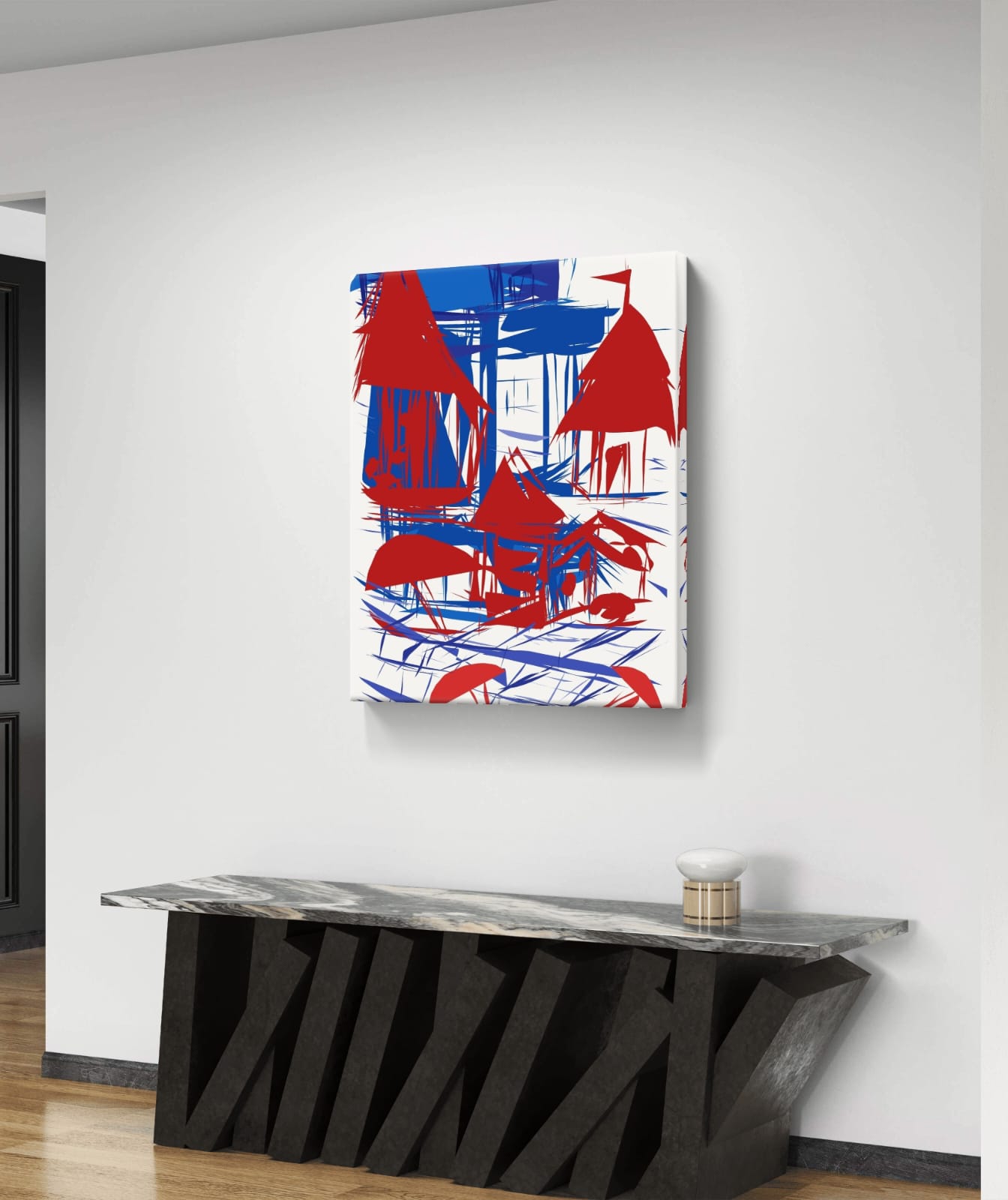This Banaras Ghat Scarlet Structure artwork blends culture with modern design. The layout feels structured and clear. Light and shadow define each shape. The result is powerful yet refined.