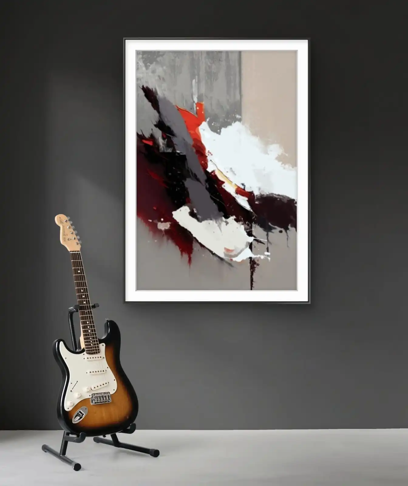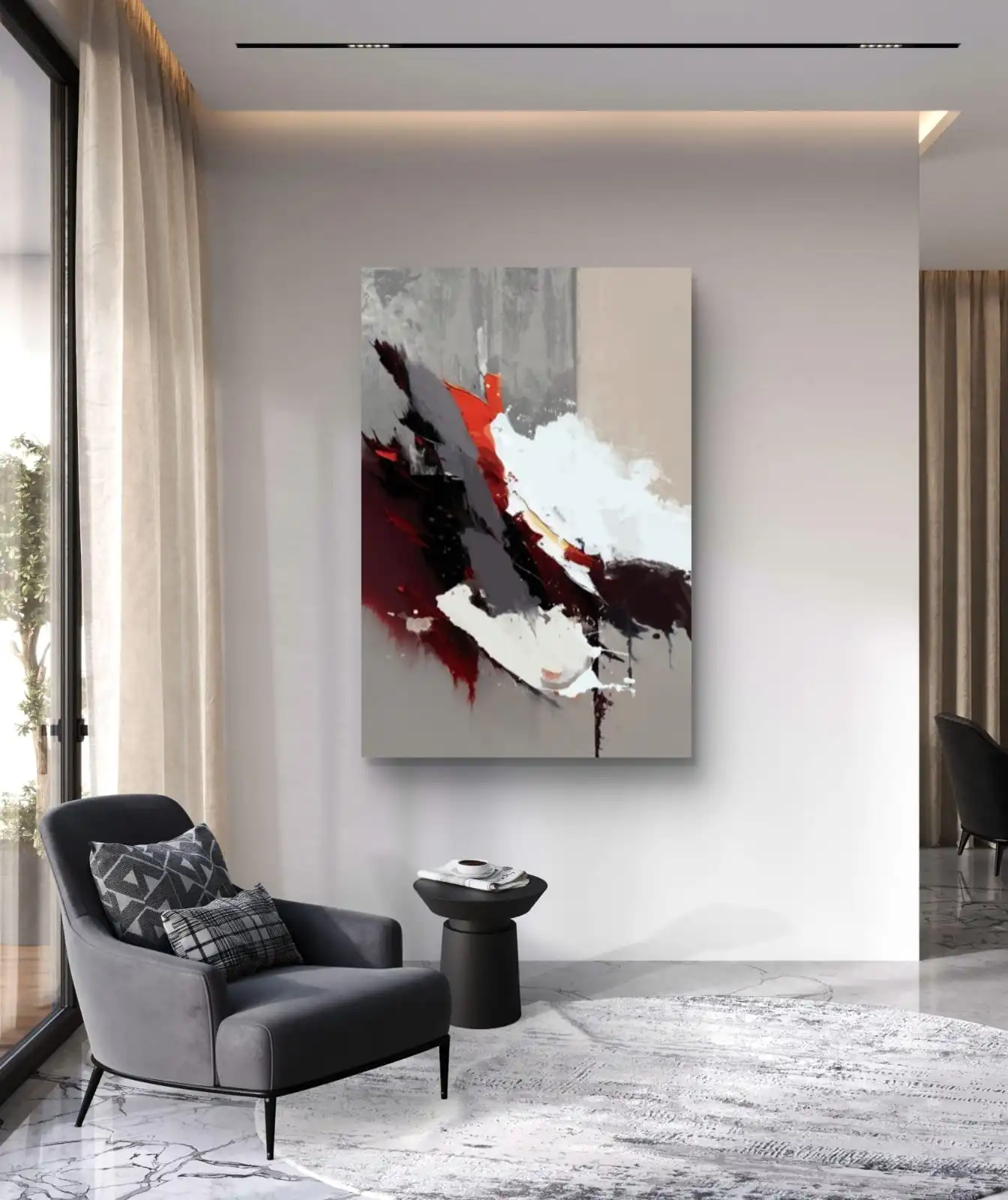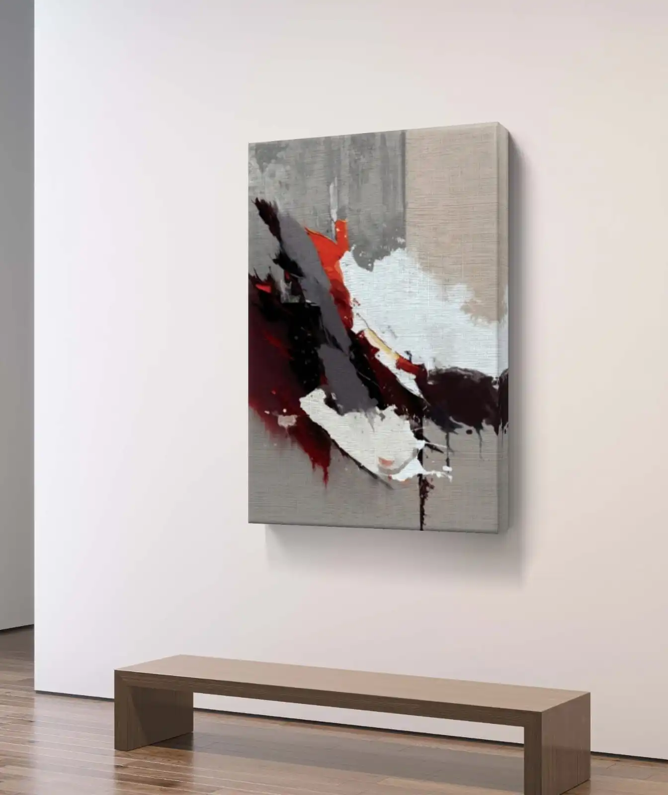 Burning Silence abstract art captures calm within chaos through bold red, black, and grey tones. Printed on premium cotton canvas, signed by the artist, and available framed or unframed. Ideal for modern homes, offices, or as a meaningful gift.