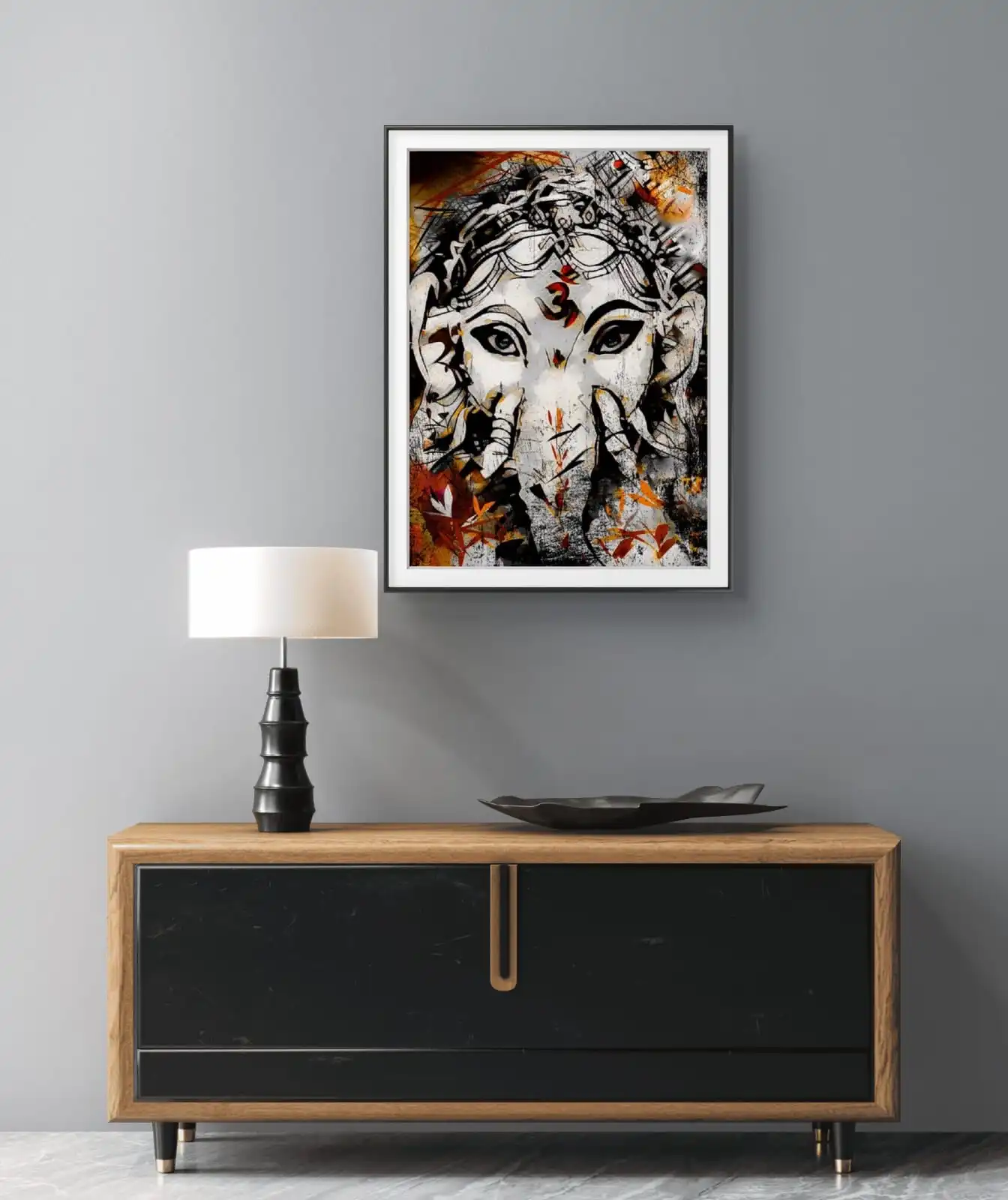 The Celestial Ganesh Vision Canvas is a great choice for homes and offices. It adds a modern artistic feel without being too bold. This print suits living rooms, studios, workspaces, or gifting needs.