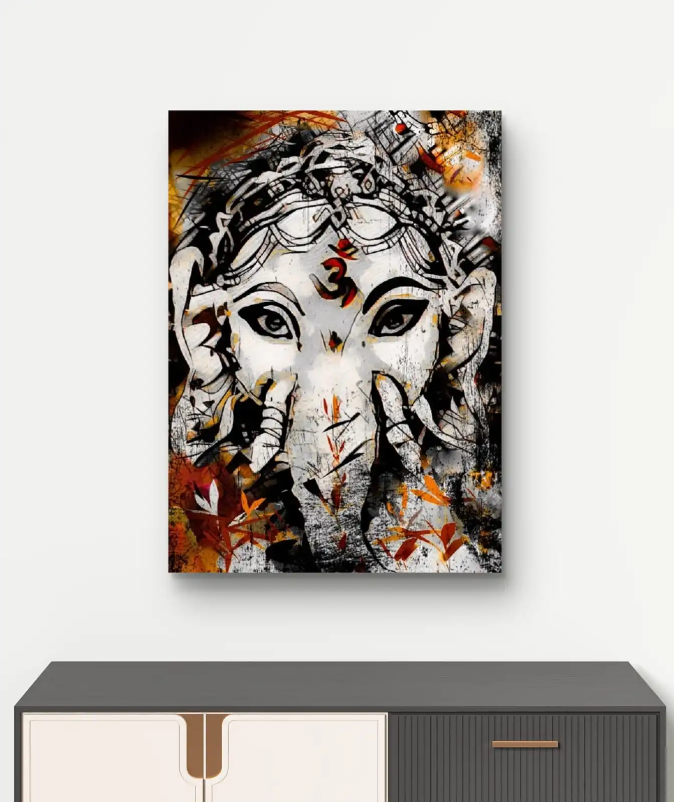 The Celestial Ganesh Vision Canvas blends doodle art with digital design to create a clean and modern look. The artwork uses smooth shapes and balanced colors, making it easy to match with many décor styles. It brings a fun, light, and creative touch to any room.