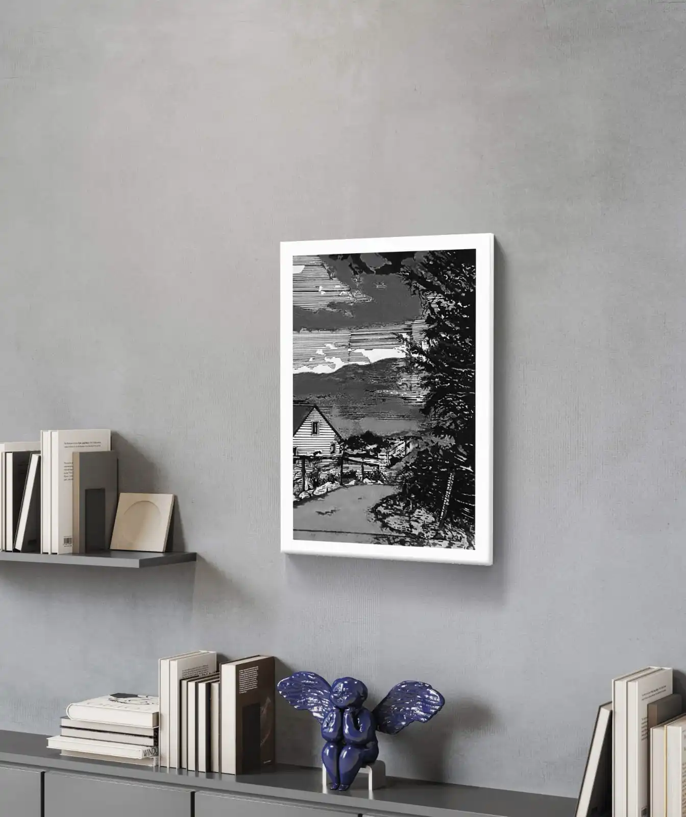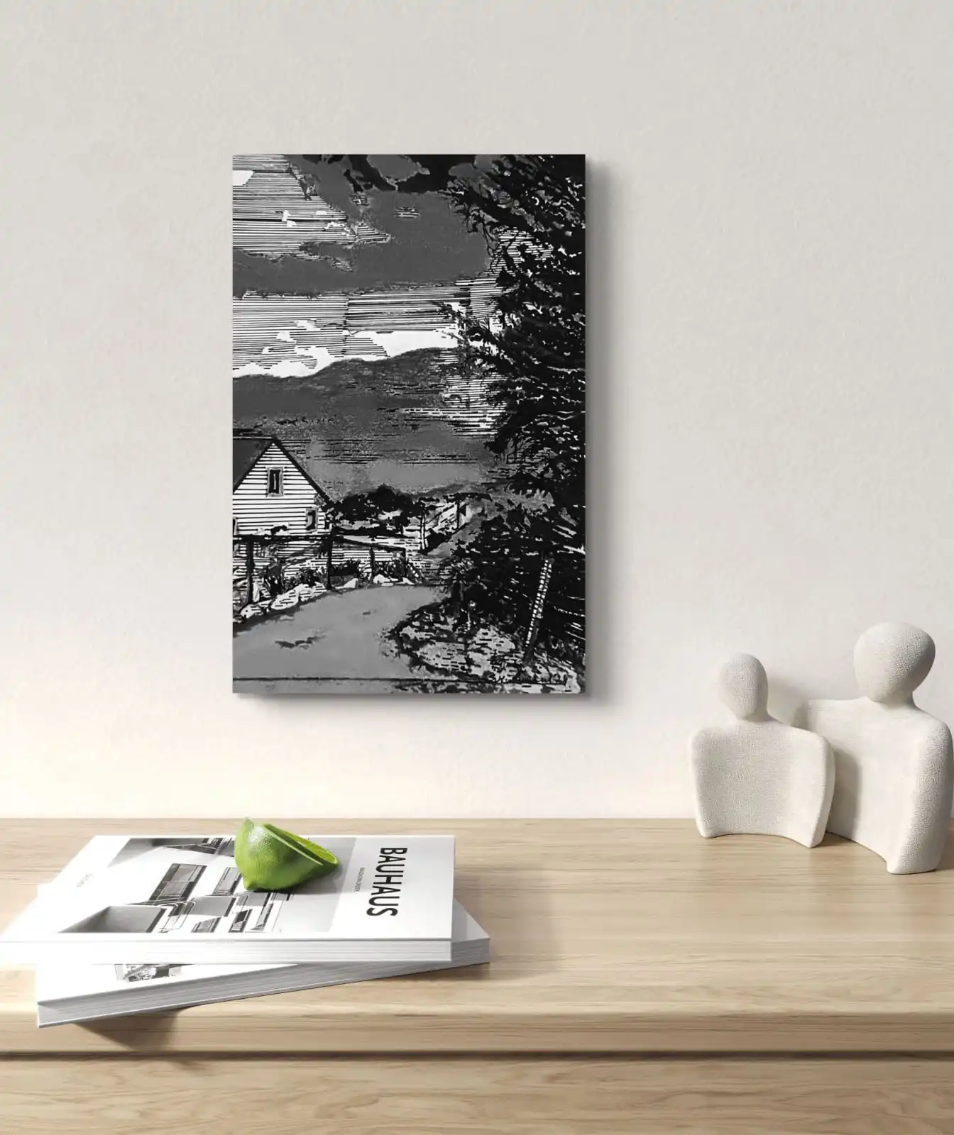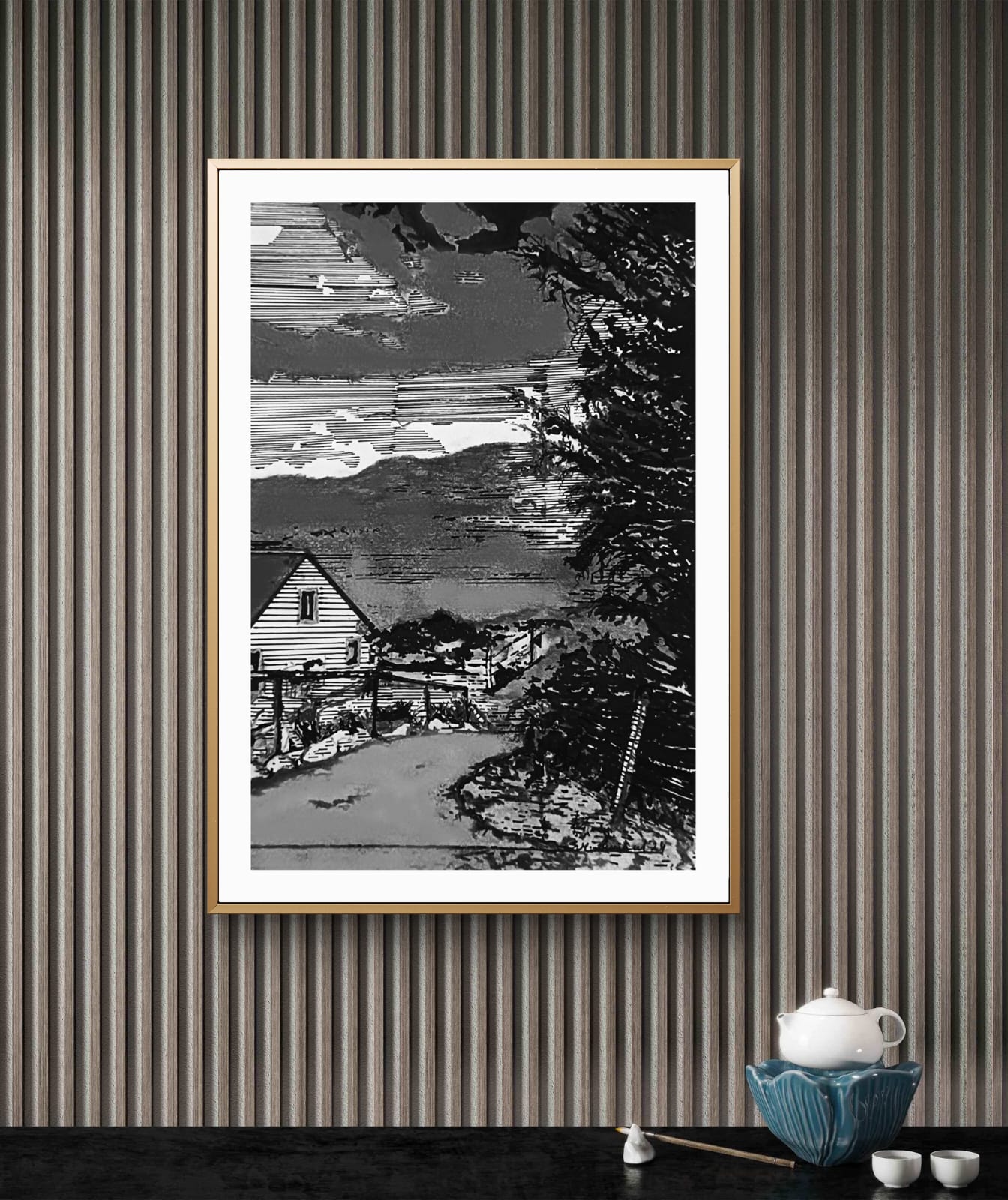 This Charcoal Mountain Cottage Sketch suits modern and classic interiors. It brings a calm countryside mood to the space. It works well in living rooms, studios, and offices.