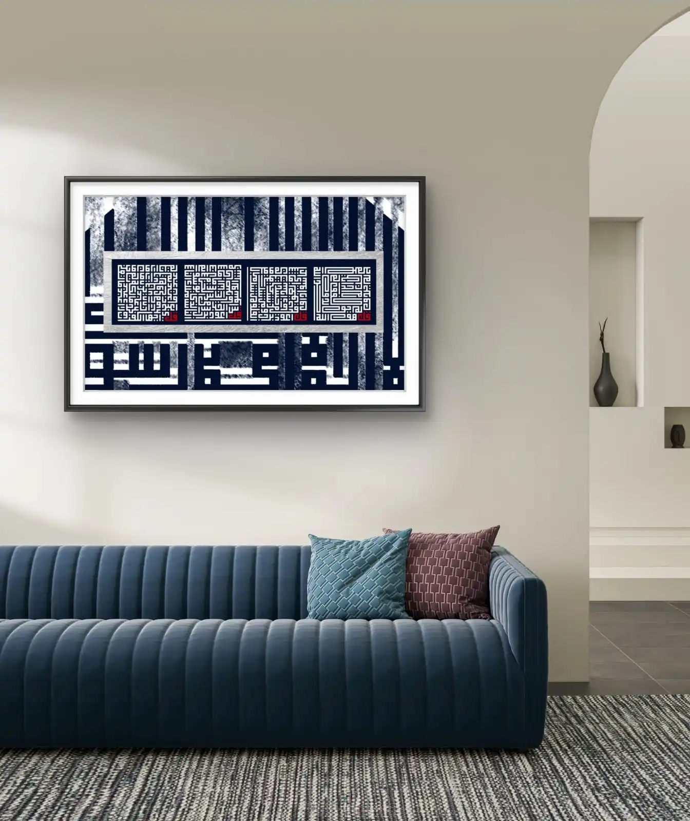This Charo Qul Kufic Calligraphy artwork fits living rooms, offices, and quiet corners. It adds meaning without filling the space too much. The simple design makes it easy to place on any wall. It also works well with different frame styles. This piece offers a clean look with lasting value.