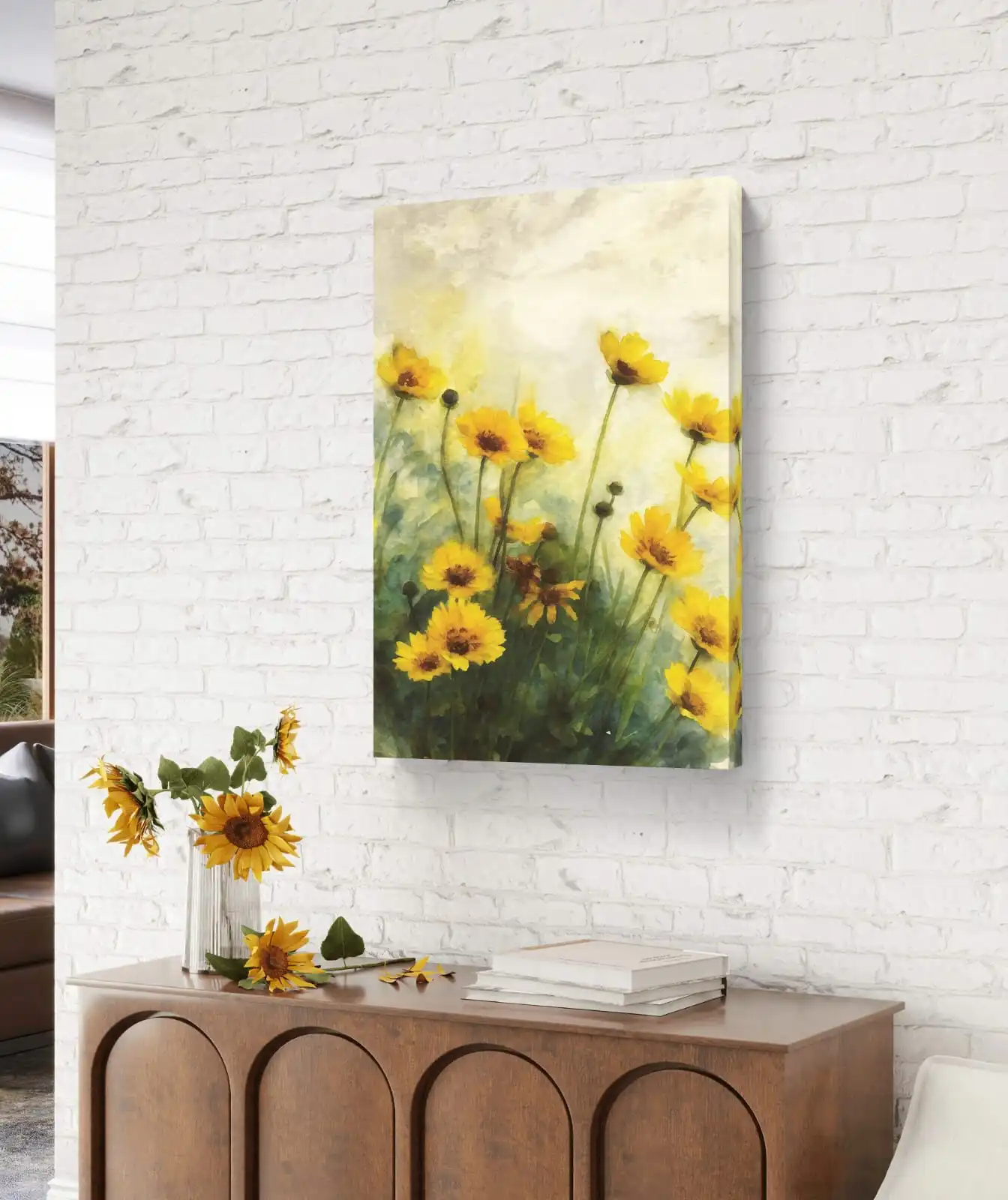 Bring home this yellow floral canvas print and let your space reflect freshness, creativity, and light.