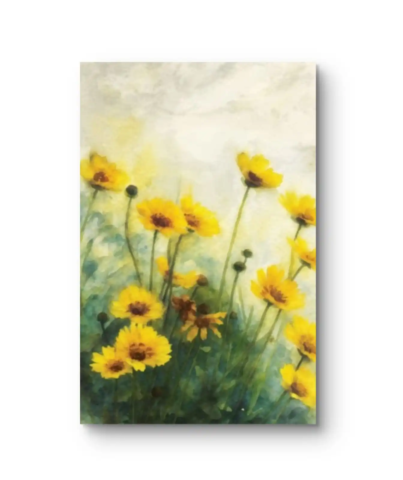 Dancing in Daylight Painting celebrates the joy of yellow daisies in a graceful design. Printed on premium cotton canvas, this fine art piece adds warmth and beauty to any setting. Each print is signed by the artist, making it a unique and authentic work of art.