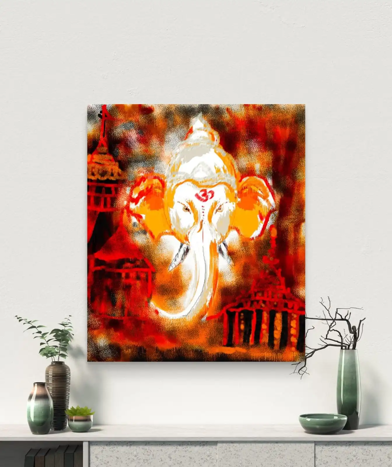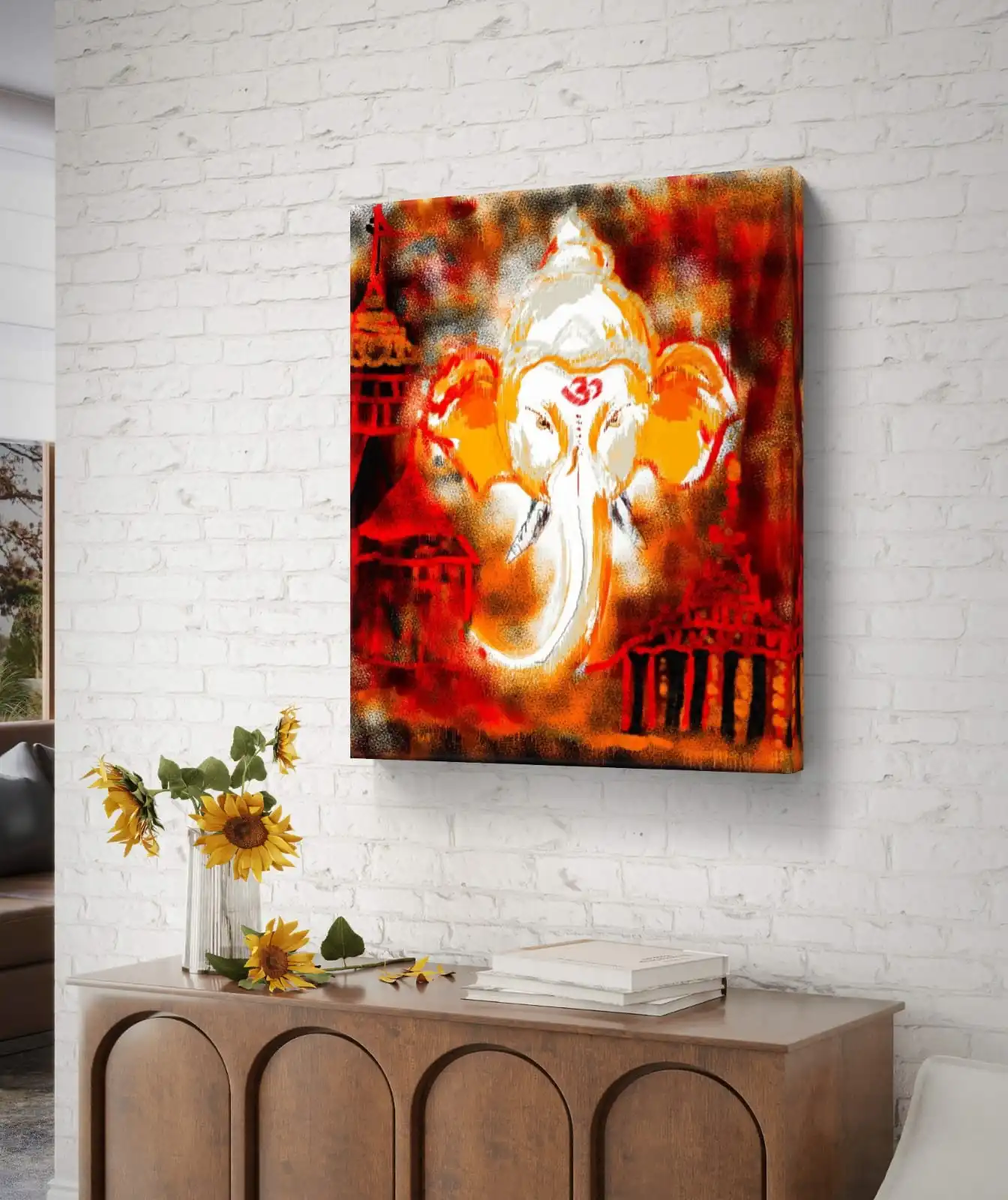 The Divine Ganesha Aura Painting is a great pick for home or office décor. It adds warmth, depth, and a soft visual focus to any room.