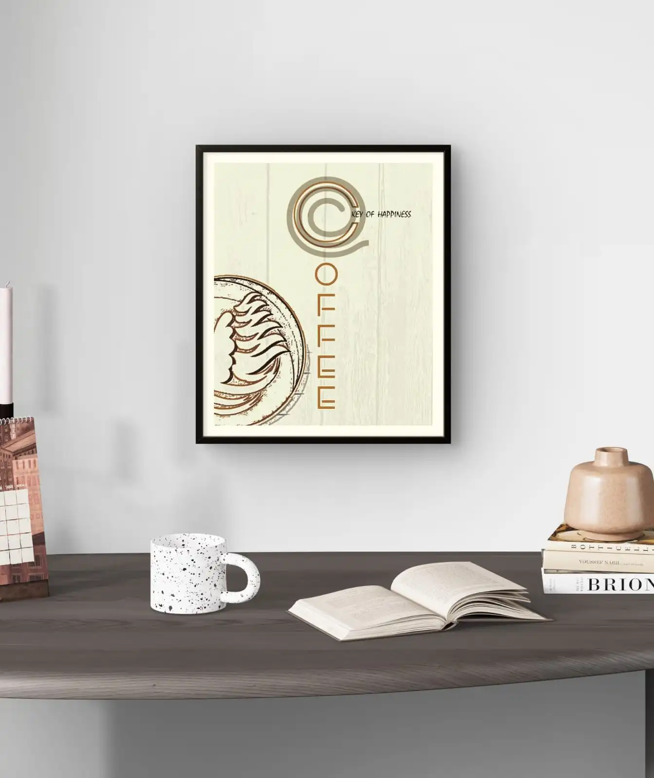 Happiness Begins With Coffee is a minimalist typography artwork inspired by calm mornings and coffee rituals. The design uses soft lines and warm tones to create a peaceful mood. It suits cafes, kitchens, studios, and relaxed living spaces.