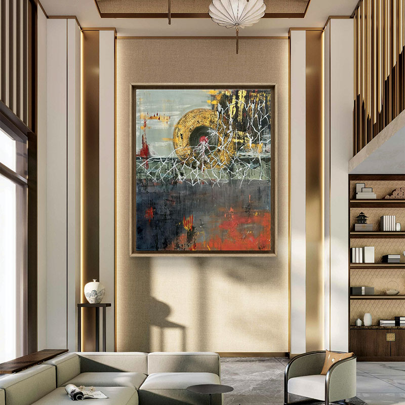 The painting shows this journey with strong brush strokes and careful design. Golden colors represent the cycle of life that can confuse and trap us. Within this circle, the soul begins to lose its clear light. Meanwhile, dark shadows show the pull of lower instincts. Soft white and bright colors reveal the pure core that still exists inside. As a result, the mix of dark and light makes the artwork powerful, emotional, and easy to relate to.