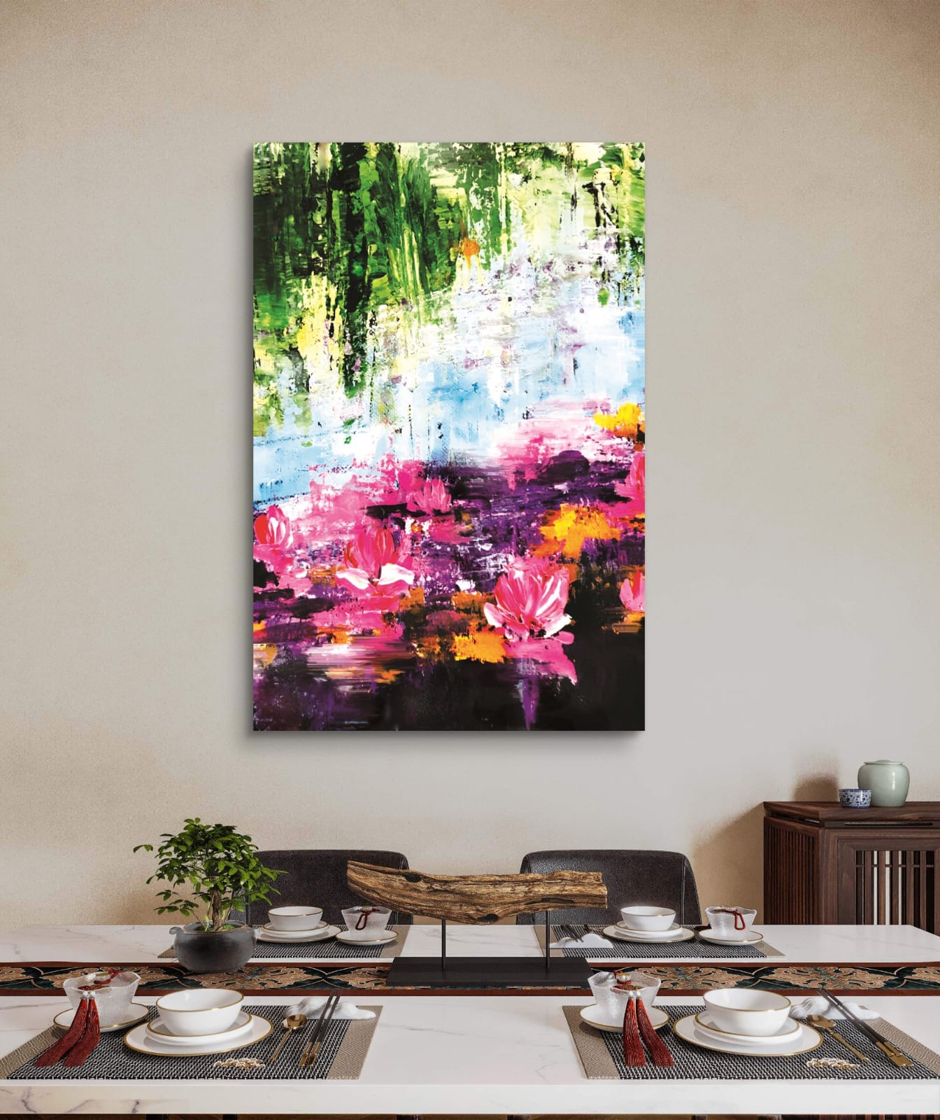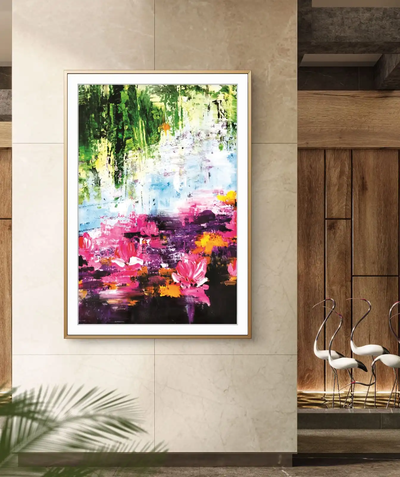 Bring floral beauty to your walls with the Lilies Blossom Art Prints. Each painting is handmade in acrylic on cotton canvas and signed by artist Sabiha Hasan Sumbul. The soft colors and graceful strokes capture the charm of blooming lilies.