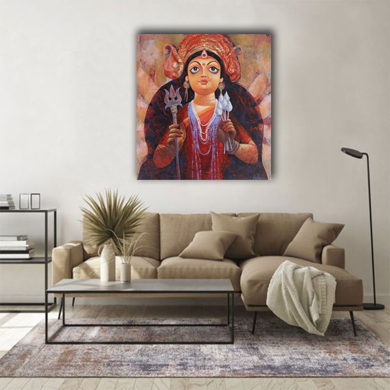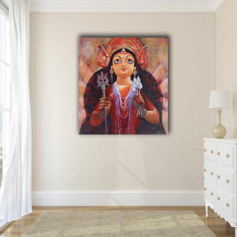 A beautiful addition to any home or office, this handmade painting of Ma Durga by Ashish Mondal is perfect for wall decoration. With its intricate details and exquisite craftsmanship, this artwork will instantly add a touch of elegance to any space. Add this masterpiece to your collection today!
