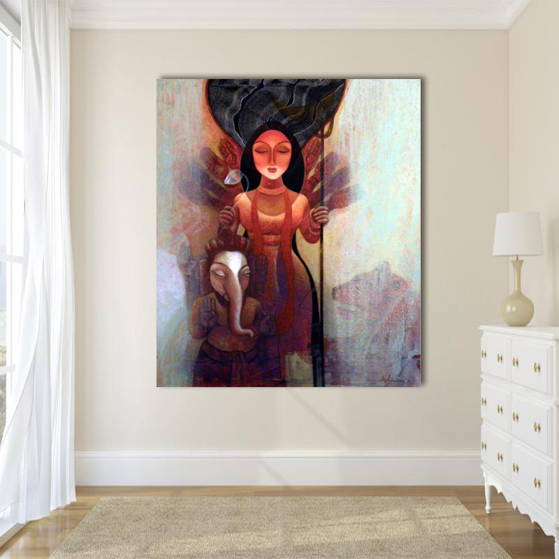 A beautiful addition to any home or office, this handmade painting of Ma Durga by Ashish Mondal is perfect for wall decoration. With its intricate details and exquisite craftsmanship, this artwork will instantly add a touch of elegance to any space. Add this masterpiece to your collection today!