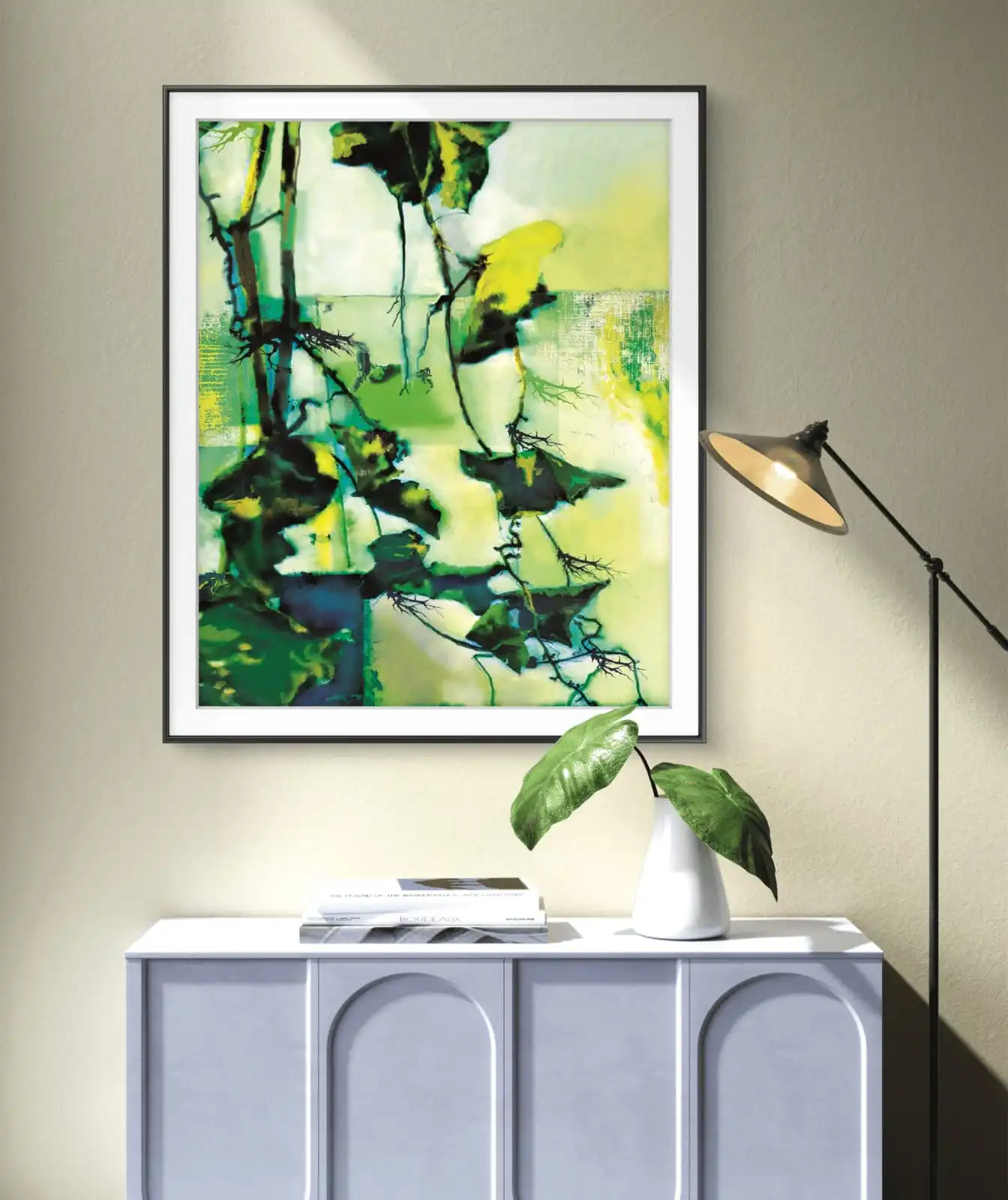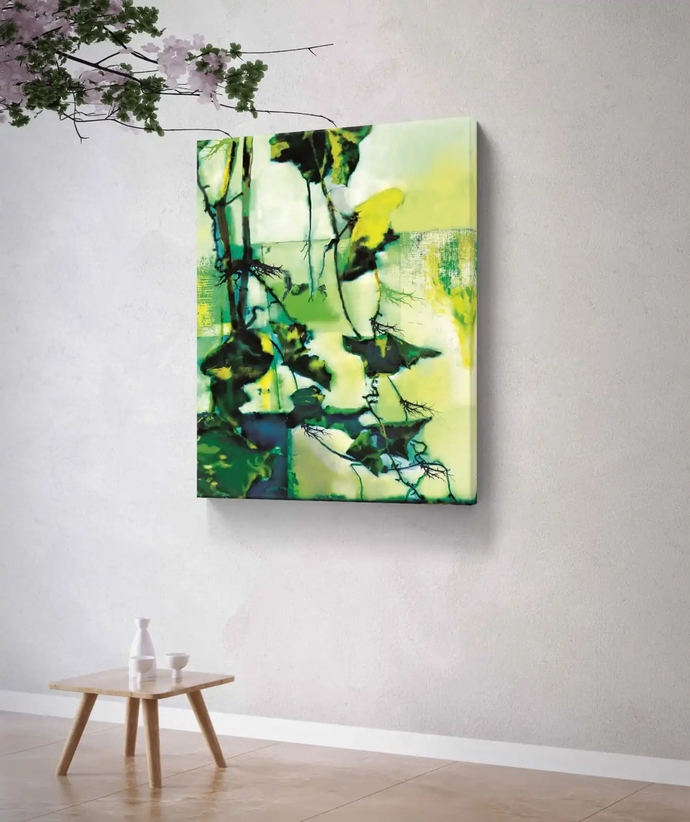“Nurture Contemporary Acrylic Painting” is a soothing blend of green and lemon yellow tones. It reflects calm, care, and growth, bringing a peaceful feeling to any room. The soft brushstrokes and bright hues make it a perfect match for modern interiors.