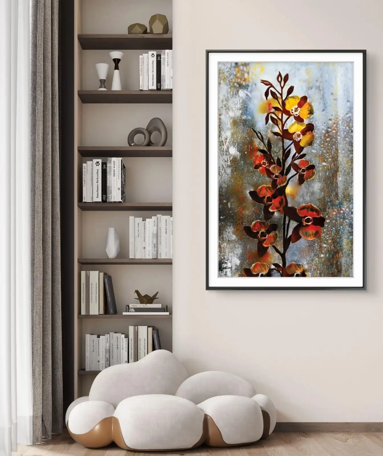 Orchid in the Rain is a stunning floral painting that celebrates the quiet charm of orchids touched by gentle rain. Printed on premium cotton canvas, this fine art piece delivers vibrant colors and lasting quality. Each artwork is signed by the artist, making it both authentic and unique.