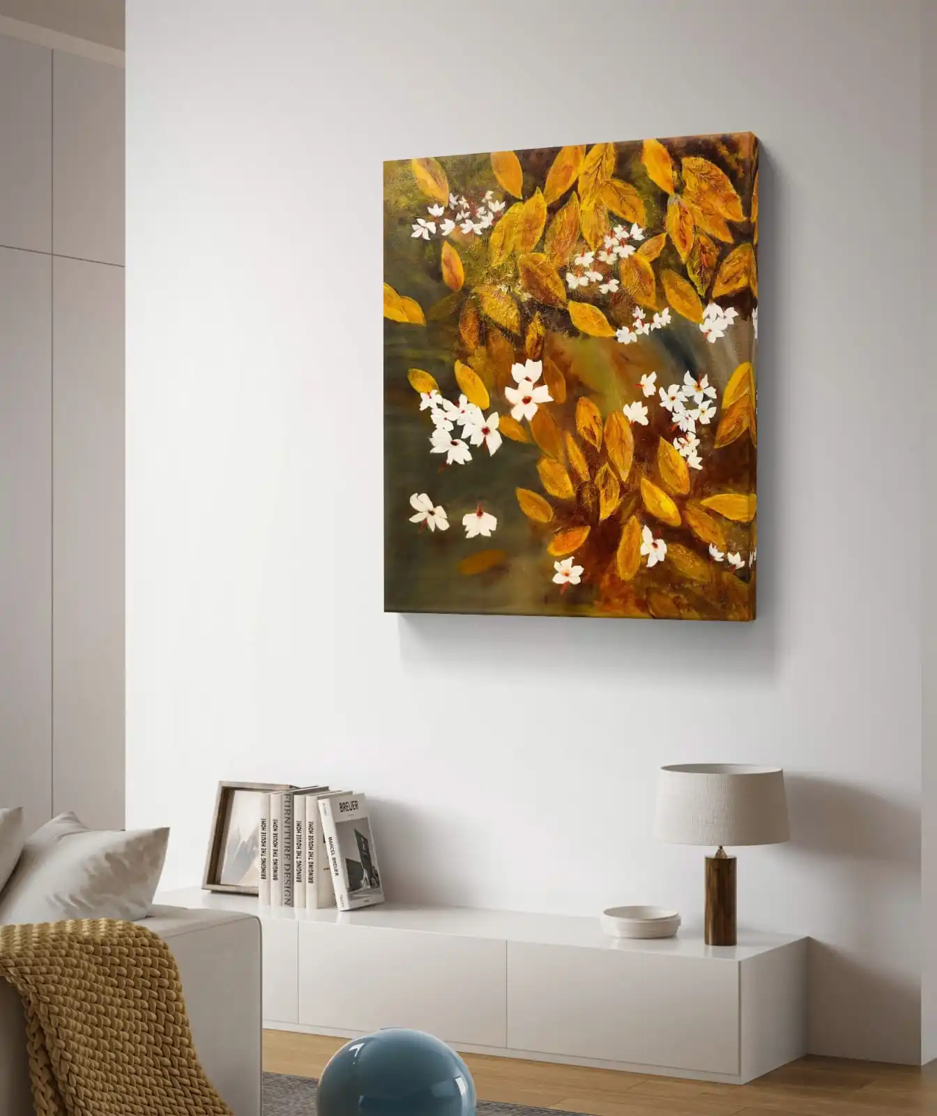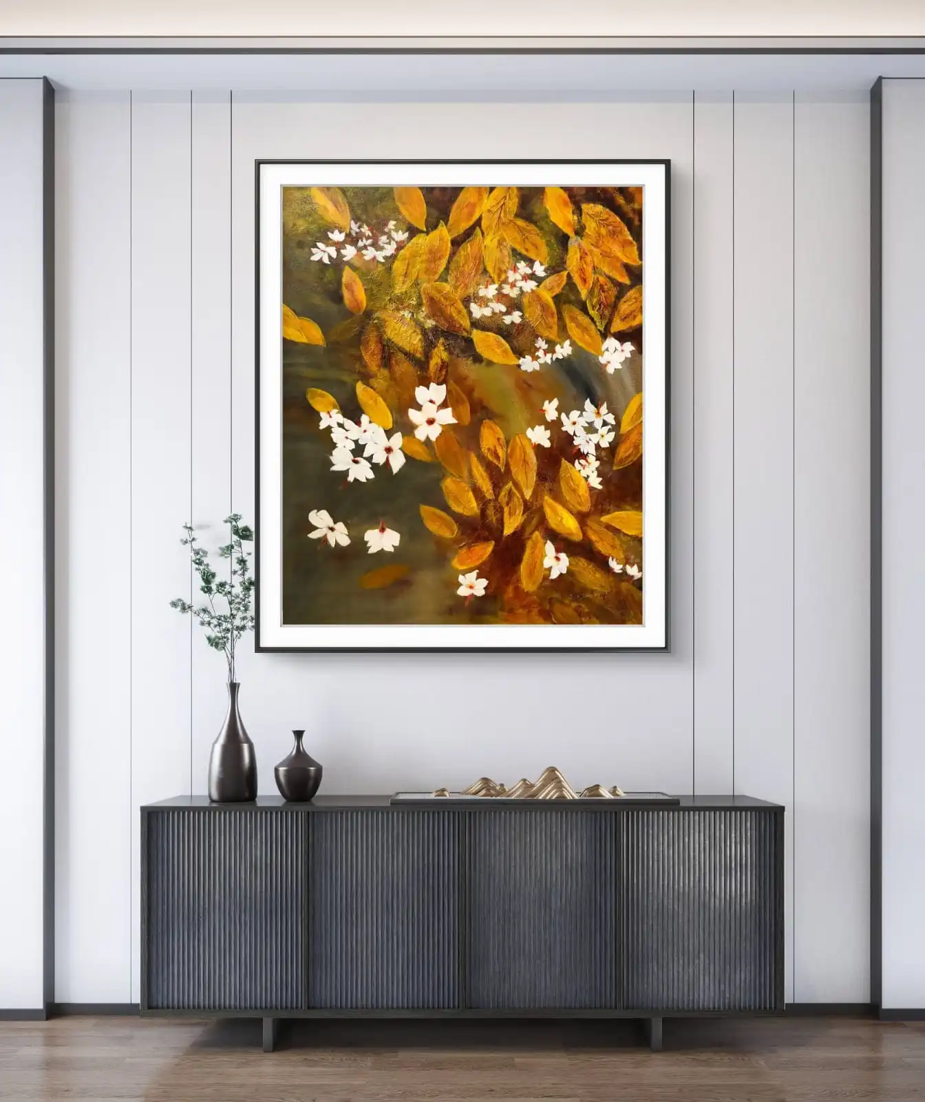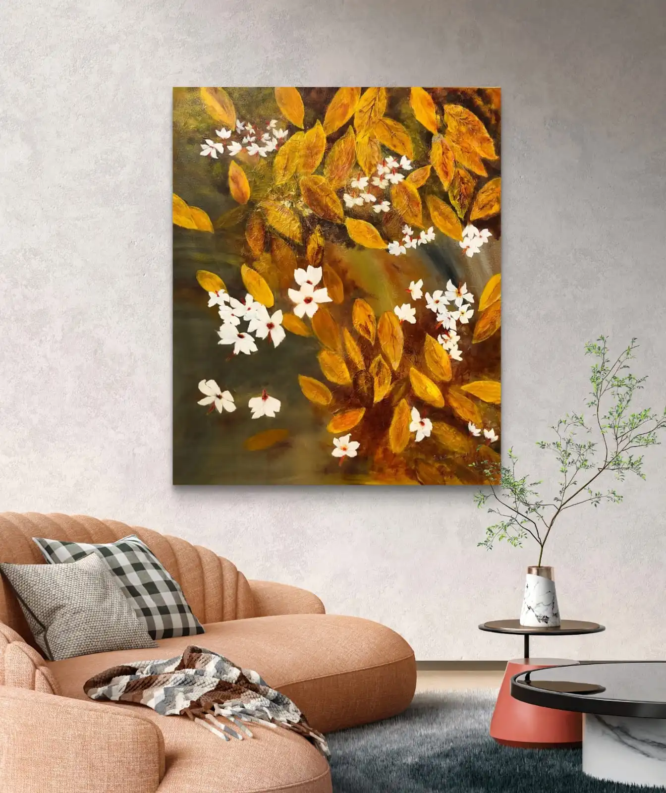 The Parijaat fine art print brings soft floral beauty to your space. The artwork shows the gentle charm of the Parijaat flower in rich acrylic tones. Each print keeps the fine details and colors of the original painting.