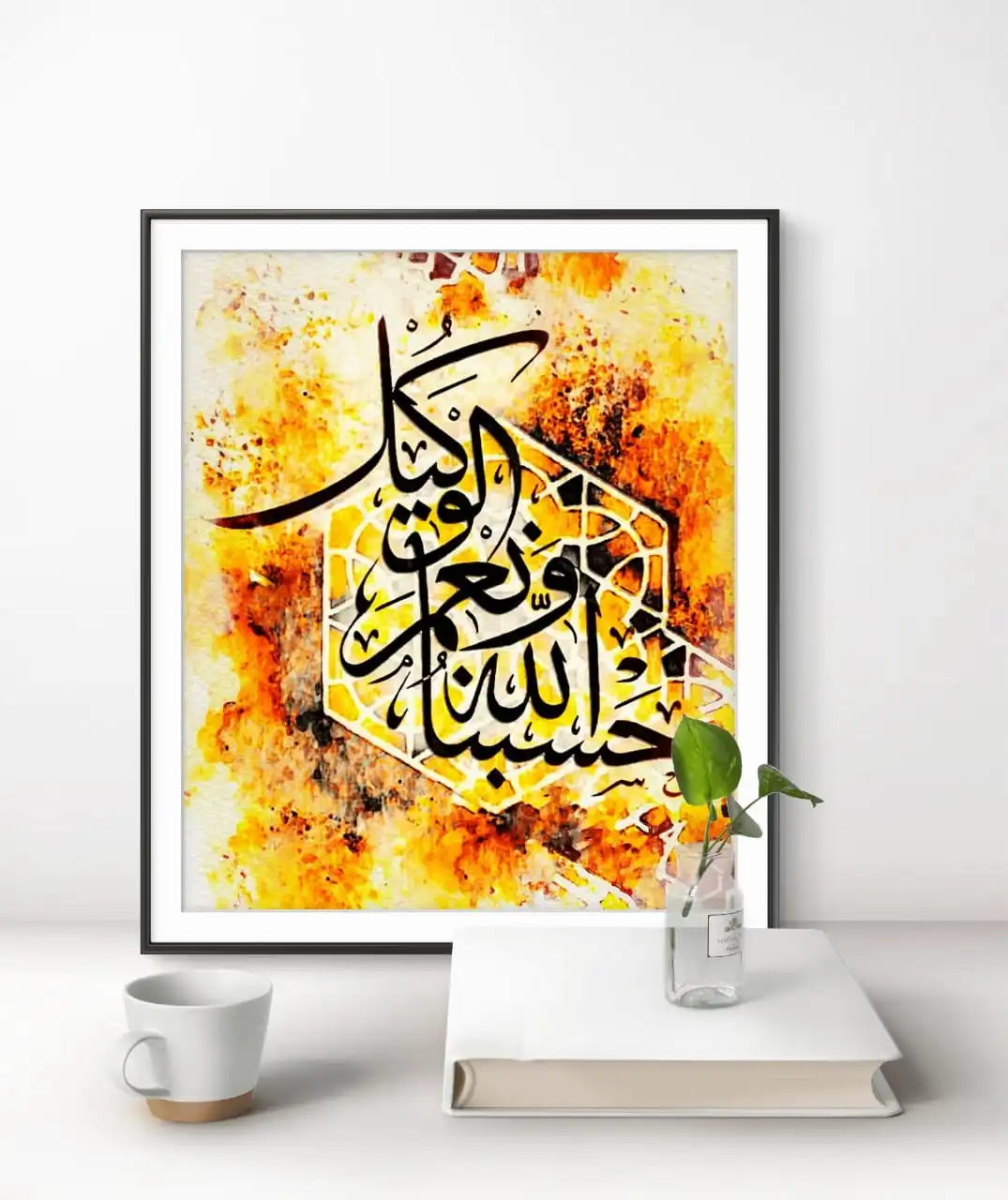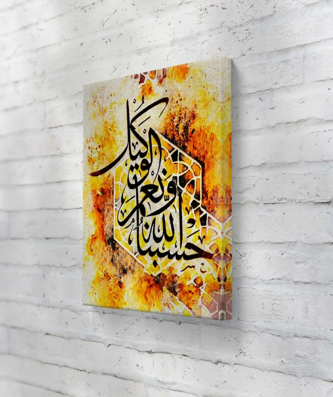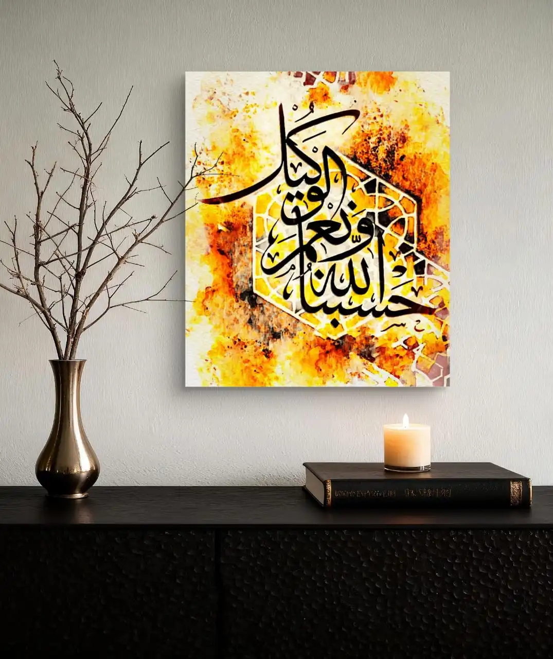 Peace and Strength Verse is a fine art print made from an original handmade Arabesque calligraphy painting. The artwork features Ayat Hasbinallahu wa ni‘mal Wakeel, known for its message of trust, calm, and inner strength. The design feels balanced and uplifting. It brings a quiet and peaceful presence to any space.