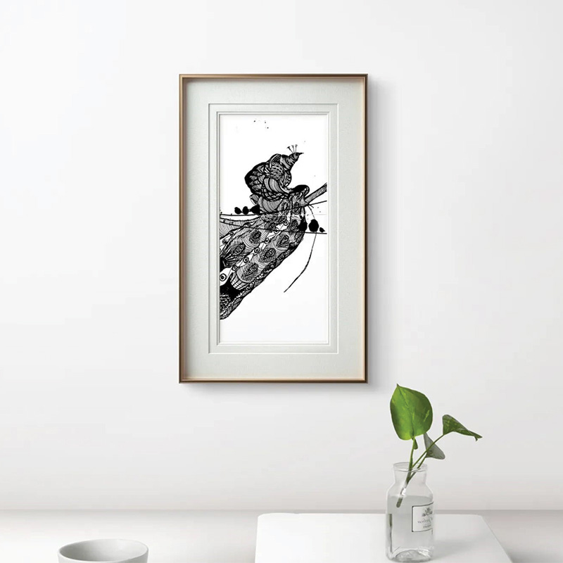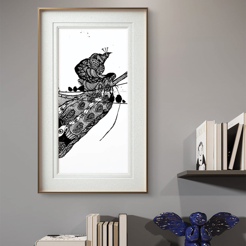 The Royal Muse Sketch by Sabiha Hasan Sumbul combines fine detail with modern creativity. The artist uses pen and acrylic on cotton canvas to create bold textures and clear patterns. Its monochrome look makes it easy to style in both modern and traditional rooms.
