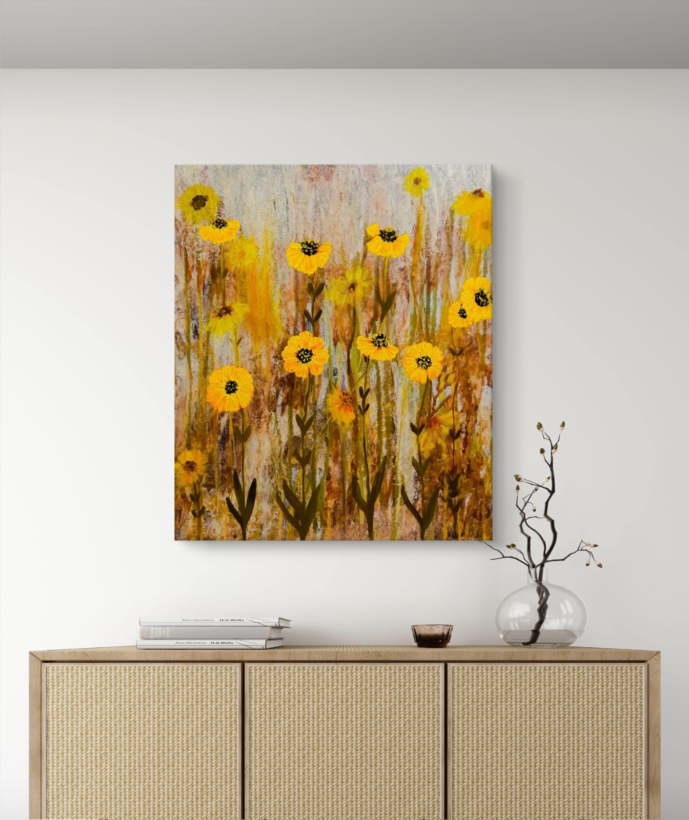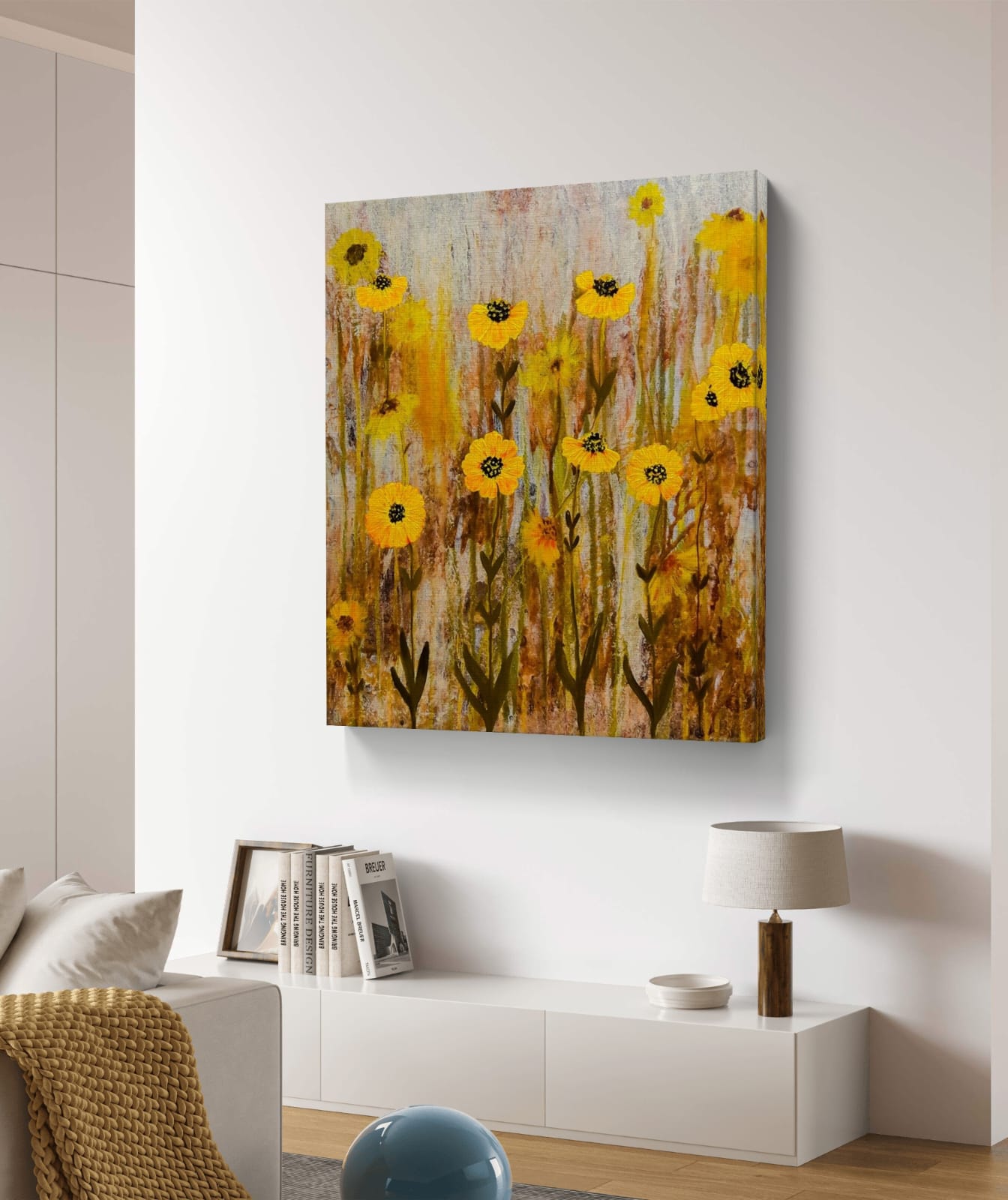 You can choose Yellow Daisies Acrylic Painting unframed, framed, or gallery wrap styles. Each style fits well with modern, minimalist, or classical décor. The painting works in living rooms, bedrooms, dining areas, offices, and reception spaces.
